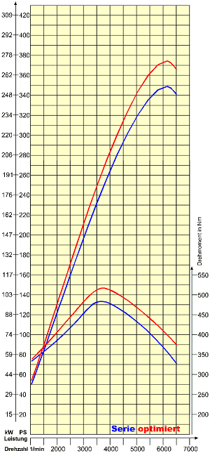 Left scale Power in kW and PS (HP). Right scale Torque in Nm (x 0.738 = lbft).