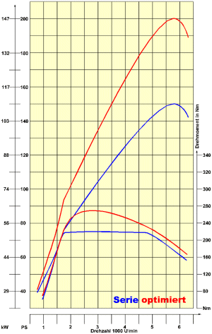 Left scale Power in kW and PS (HP). Right scale Torque in Nm (x 0.738 = lbft).