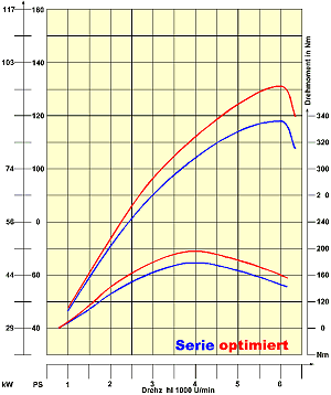 Left scale Power in kW and PS (HP). Right scale Torque in Nm (x 0.738 = lbft).